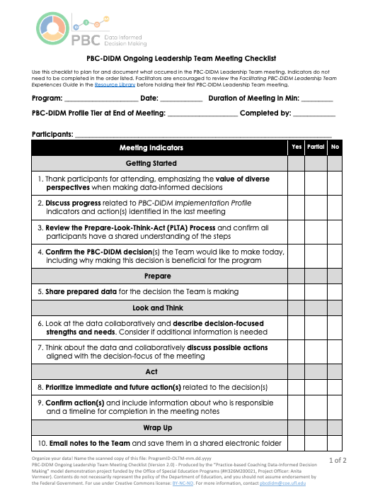 PBC-DIDM Ongoing Leadership Team Meeting Checklist